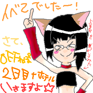 後輩に復活サー作るのを進められた だが、断れない/(^0^)\アー なにやらみんなサー名を考えてくれてるみたいで… そしてそれをアーカイブに書き込んだら 違う友達からサー作ろうという勧誘が/(^0^)\アー 3つの受け持ちはキツいかなぁ…ボカロサークル作りたい(ぁ そしてラミカ用(気が早い)とかいって リンを描いてみた PR 2009.03.17 Tue 15:46:57 Offレポ―二日目+ホテル―2009.03.15 Sun 01:59:41 offお疲れです☆―宿題―オフお疲れさまでした☆